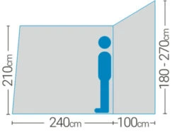 A budget, lightweight drive away awning by Outdoor Revolution – the Cayman Outhouse Handi Mid awning is designed for vans with a height of 210 – 255cm. Perfect for adding some living space to the exterior of the vehicle, with a highly waterproof 3000mm fabric. It is perfect for touring, with a simple pole and sleeve design, for easy pitching and set down.