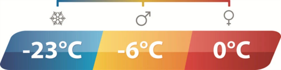 Tcomfort – This is the lower limit that a ‘standard’ woman can sleep comfortably in a relaxed position, such as sleeping on their back. We consider this and above the optimum temperature range for everyone’s sleep comfort over time but, given the gender specific character of this measurement, we use the female symbol when space prohibits the use of ‘Tcomfort’ – such as sleeping bag labels.