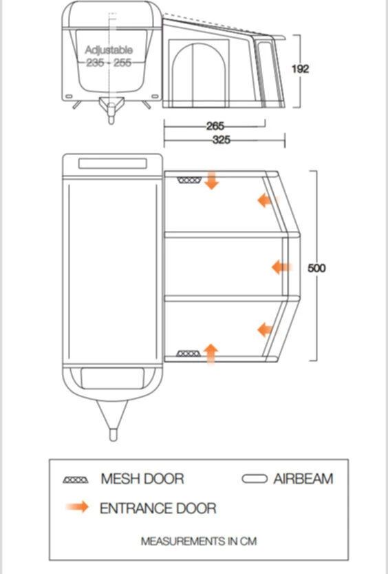 A fantastic caravan awning for touring, the Vango Tuscany 500 is very versatile, offering great flexibility over shorter-term camping trips during the Spring to Summer time. With the latest Airbeam technology embedded, the Single-Point inflation system allows it to be pitched from one central location. Further to this, it has the Superbeams, with a 13cm diameter, making them stronger, and able to cope with the weight and quality of the 300-Denier fabric.