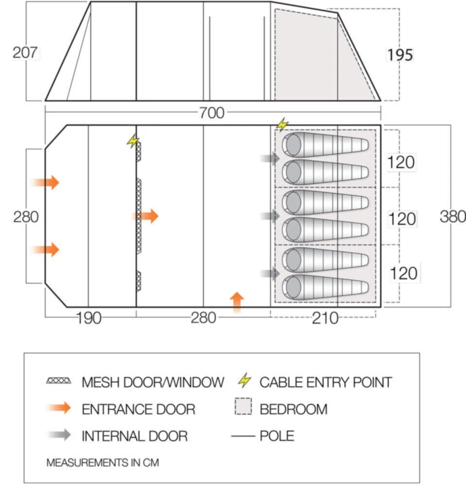 - Sewn-in Groundsheet with drop-down doors.